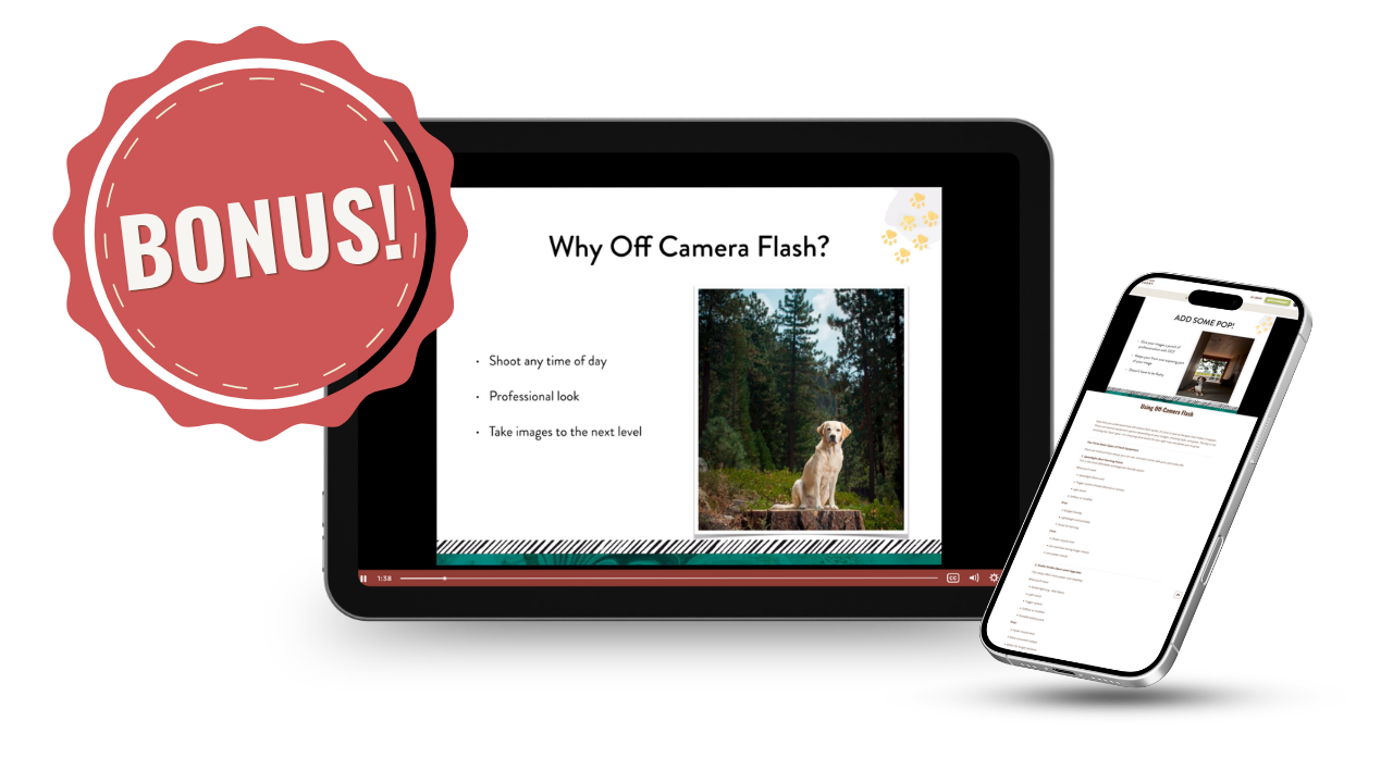 - Lightroom 101 and Photoshop 101 — no fluff, just what you actually need for pet photography